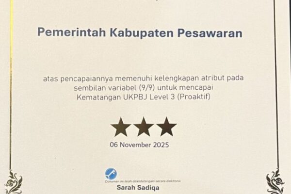 Pemerintah Kabupaten Pesawaran meraih penghargaan Unit Kerja Pengadaan Barang/Jasa (UKPBJ) Proaktif Level 3 dari Lembaga Kebijakan Pengadaan Barang/Jasa Pemerintah Republik Indonesia. Penghargaan tersebut diterima langsung oleh Bupati Hj. Nanda Indira B., S.E.,M.M. dalam Rapat Koordinasi dan Penyerahan Piagam UKPBJ Proaktif pada Rapat Koordinasi UKPBJ Triwulan I Tahun 2026, yang digelar di Gedung LKPP, Setiabudi, Jakarta…