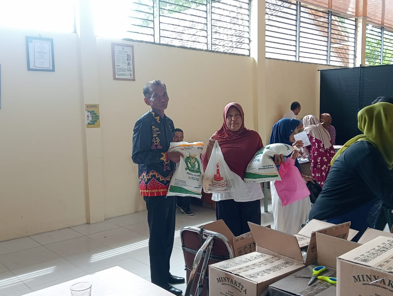 Bantuan tersebut diberikan dalam bentuk beras, minyak goreng yang bertujuan untuk membantu meringankan beban kebutuhan pokok masyarakat serta memperkuat ketahanan pangan di tingkat rumah tangga.